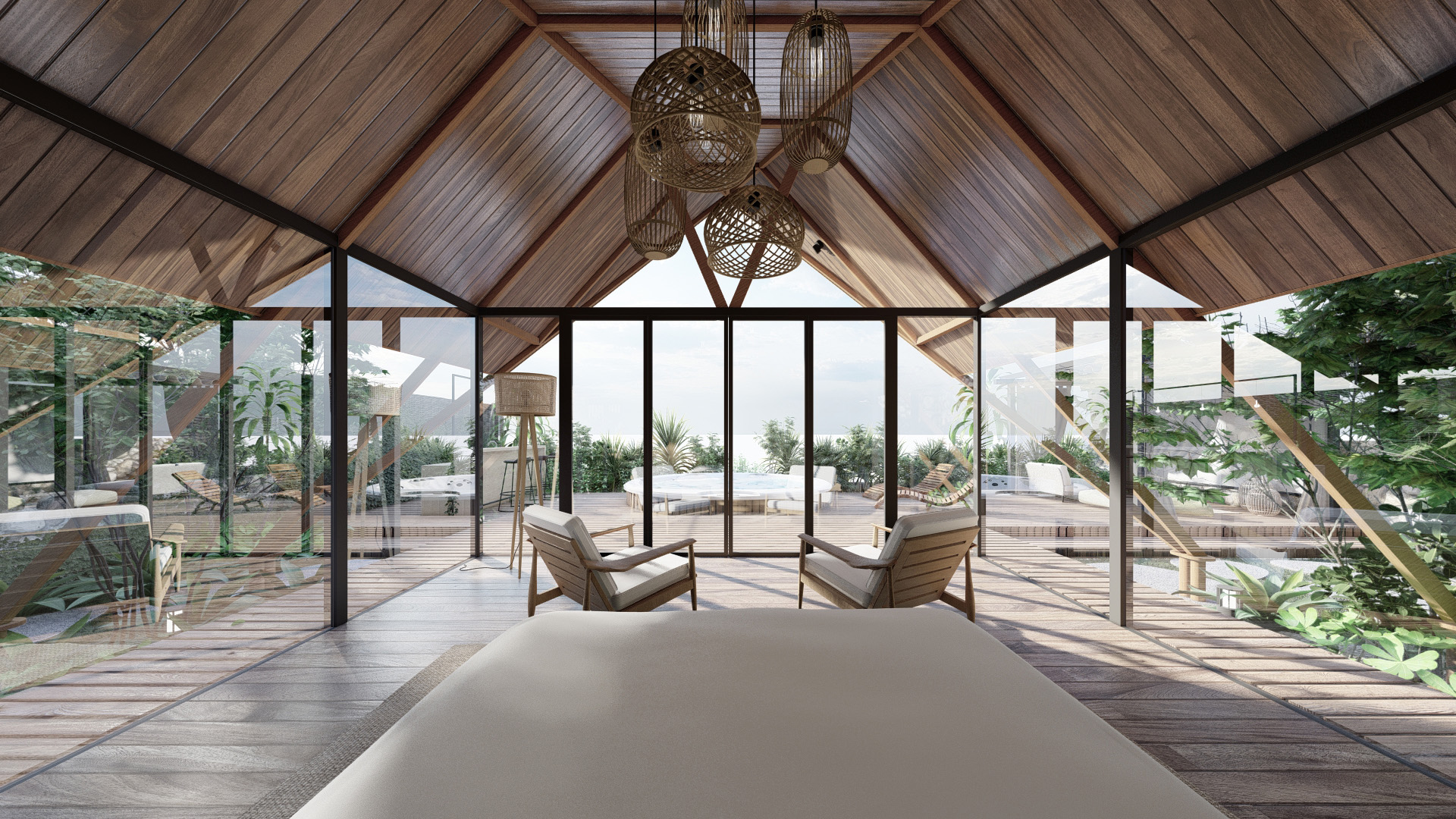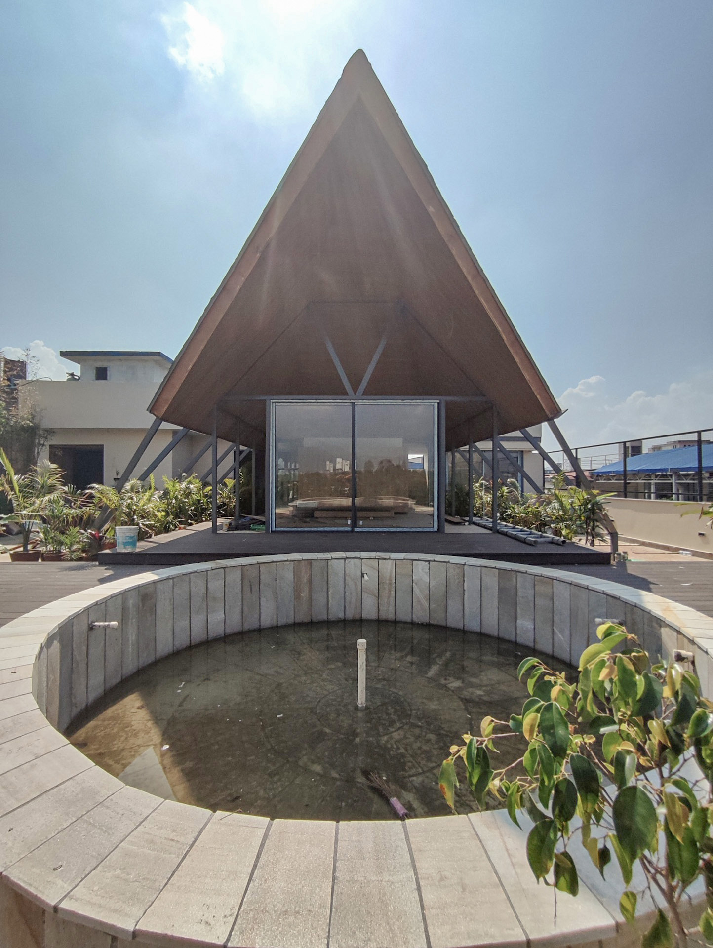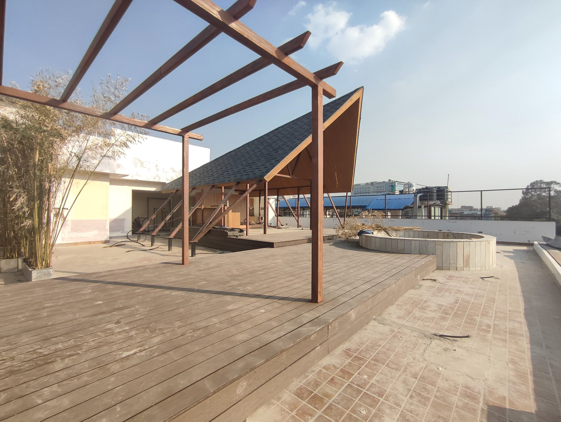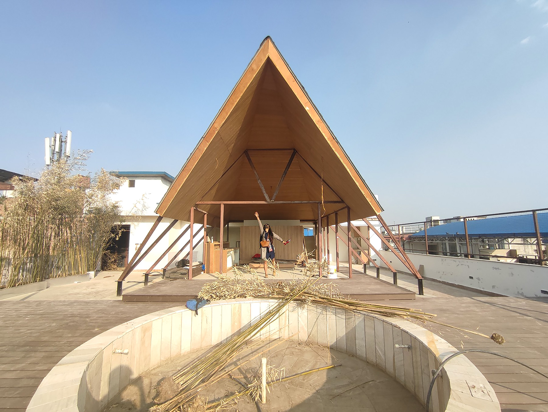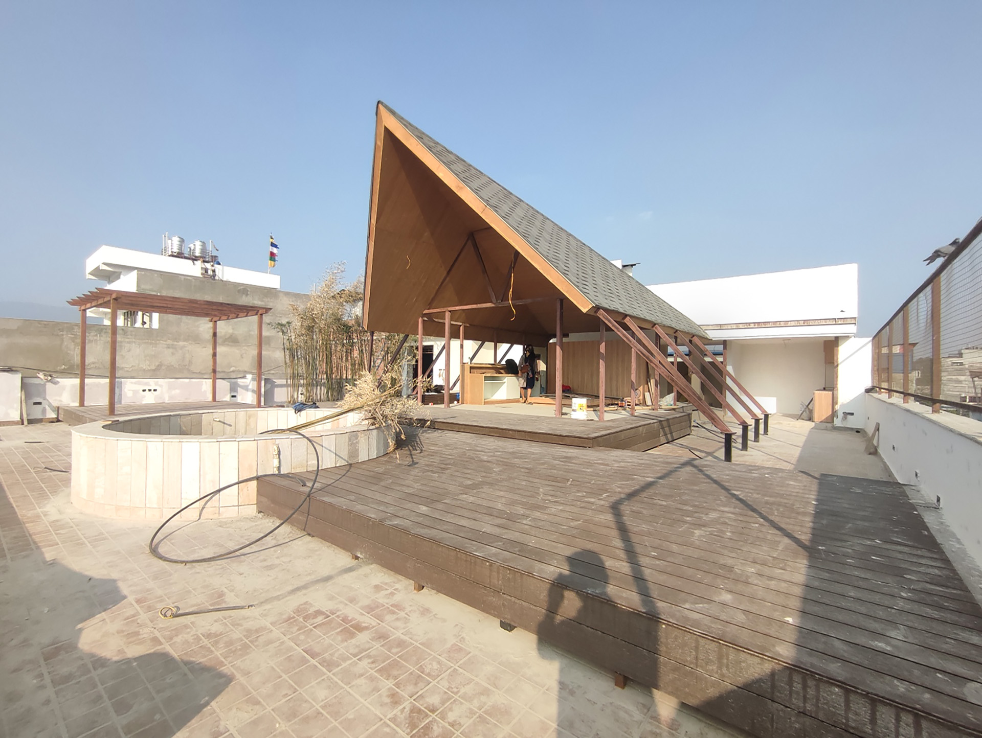 Tucked on a rooftop in Naxal, the Urban Getaway embodies the client’s vision for a simplistic aesthetic and efficient terrace utilization, offering urbanites a remarkable fusion of modern architecture, breathtaking views of the Kathmandu skyline, and a harmonious design that creates an iconic structure and a holistic retreat experience.